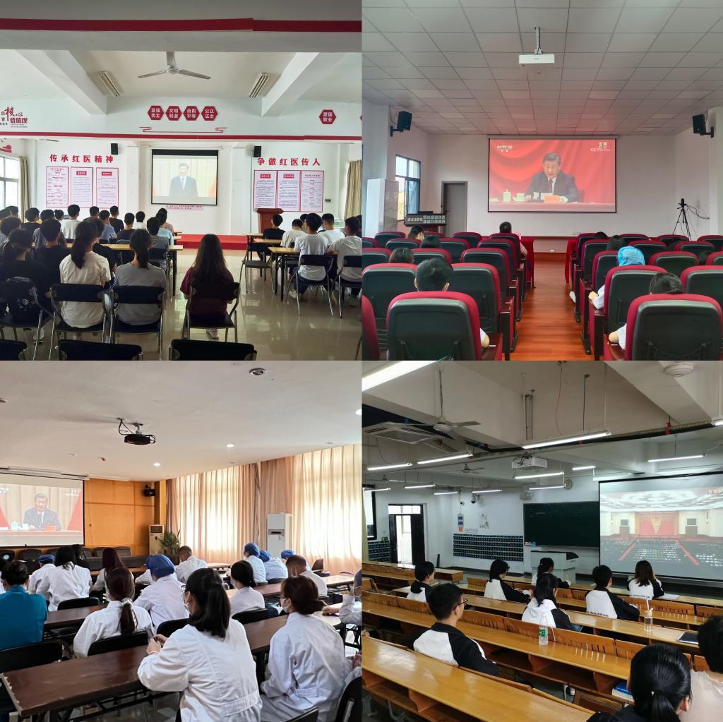 各下属学院(附属医院)在分会场积极组织青年教师和团员学生同步收看大会现场直播,学校广大师生还通过网络直播、移动终端等多种方式在办公室、图书馆、教室、宿舍收听收看大会盛况。