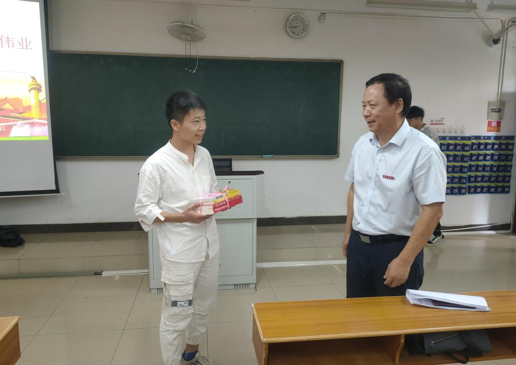 课后,陈亮与来自2020级物联网工程本科三班的联系学生进行交流,并给他赠送红色书籍和与专业相关的书籍,寄予其坚定理想信念、练就过硬本领的殷切希望。