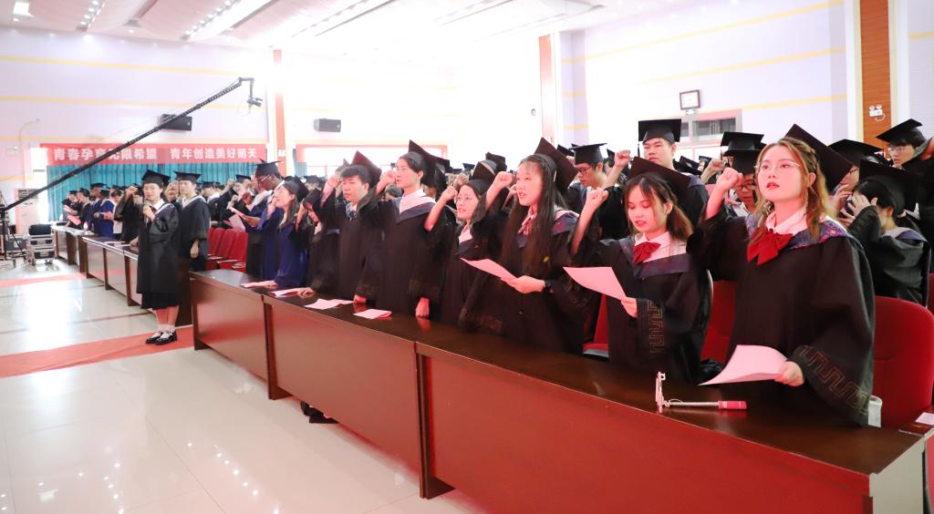 基础医学院2017级临床医学专业本科(8)班黄烈豪、国际教育学院2018级临床医学专业硕士研究生OUMAROU MOUSSA和第一临床医学院2019级临床医学专业张秀芳分别代表本科、留学生和研究生毕业生发言。他们纷纷表达了对母校的感谢和眷恋之情,并祝福母校越办越好。