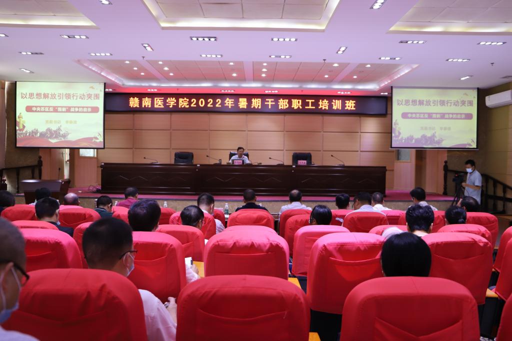 8月21日,我校2022年暑期干部职工培训班在黄金校区举办。学校党委书记李恭进作开班讲话,党委副书记曾泽鑫主持开班式。在家的校领导陈亮、黄瑞忠、叶军明、肖树辉、彭维杰出席开班式并参加培训。