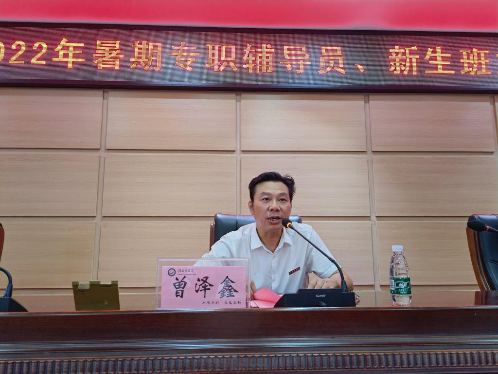 曾泽鑫强调,辅导员、班主任队伍是大学生思想政治教育的骨干力量,工作内容涉及学生学习与生活的方方面面,要严格按照“政治要强,情怀要深,思维要新,视野要广,自律要严,人格要正”的标准开展各项工作,并就辅导员、班主任队伍建设提出三点具体要求:一是要提高政治站位,坚持立德树人;二是要立足岗位,认真履职尽责;三是要创新工作方法,提升工作水平;四是要加强学习,坚定职业理想。