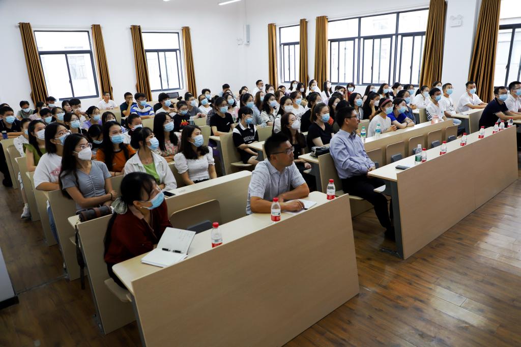 张小康从学校所在地赣州市概况、学校基本情况、学校办学特色与成效、学校建设与发展规划四个方面,与大家一起追溯赣医历史、感悟赣医精神、品读赣医故事、数说赣医特色,带领大家共同走进赣州这片充满红色记忆的热土,用一个个鲜活的事例、一张张珍贵的图片总结回顾了学校81年光辉的办学历程和深厚的办学底蕴,展望了学校未来光明的发展前景和宏伟蓝图,以一名师者的情怀、一名大学校长的责任,为研究院全体研究生上了别开生面的“开学第一课”。