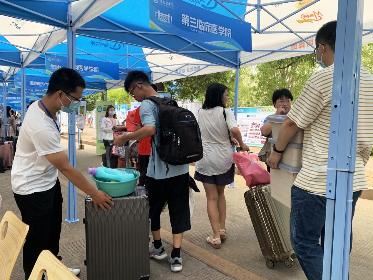 志愿服务暖人心。为切实做好迎新工作,积极营造热情周到、安全有效的工作氛围,校学团部门在暑期期间就启动了接站人员安排、校内外接站踩点、志愿者招募等工作,按照学校迎新工作要求,学团队伍精心筹备、协调联动,在全校范围内招募550余名学生志愿者参与学校2022年秋季学期开学迎新工作,为给新生和家长留下专业、负责、积极向上的赣医青年志愿者形象,学团队伍指导老师在老生返校后第一时间组织开展了迎新志愿者培训工作。为便利新生来校,今年开学迎新在赣州市“三站一场”共设置校内外迎新志愿服务点11处。