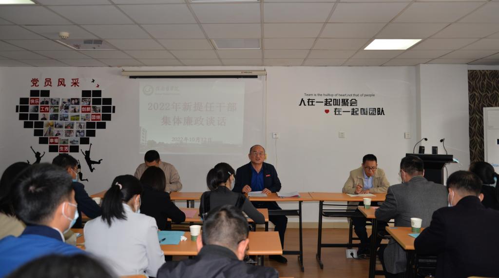 10月12日,学校纪委、党委组织部联合在学校反腐倡廉警示教育馆对新提任科级以上干部进行集体廉政谈话。学校党委委员、纪委书记、监察专员肖树辉出席并作廉政讲话。学校纪委、党委组织部负责同志及近期新提任的12名处级干部、16名校本部科级干部参加谈话。