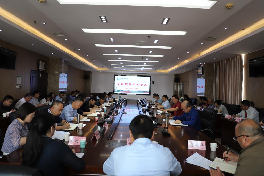 10月24日,学校召开全校领导干部会议,传达学习党的二十大精神,学校党委书记李恭进主持会议并讲话,党委委员、副校长陈亮传达了党的二十大报告精神,在家的党委班子成员黄瑞忠、肖树辉、彭维杰、廖志平、赖传景出席。