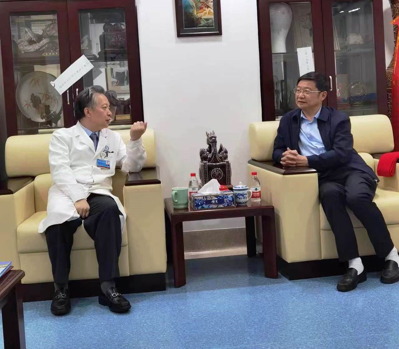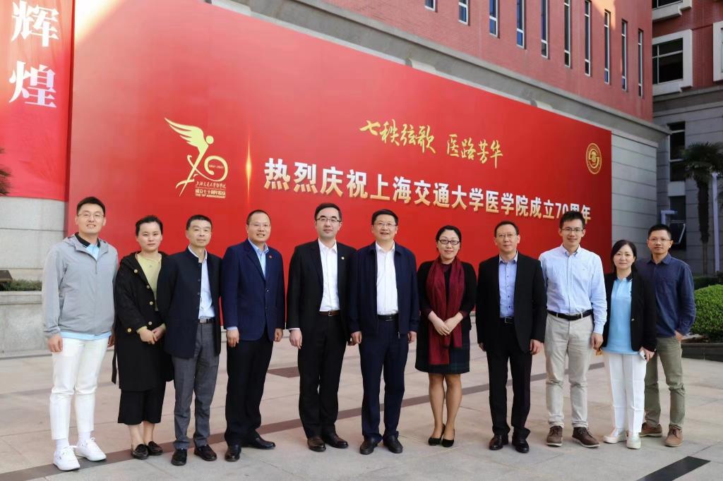10月25日,张小康一行还看望了我校82级校友,上海交通大学医学院附属第九人民医院副院长、整复外科主任李青峰教授,就帮扶指导我校学科建设及附属医院建设发展进行了深入交流。