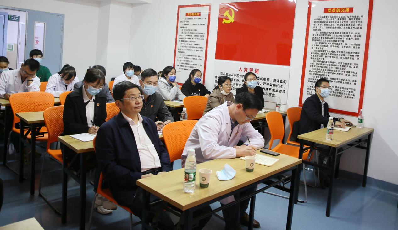 一附院相关职能部门负责同志及二总支九支部全体党员、实习生党员、入党积极分子聆听了宣讲。
