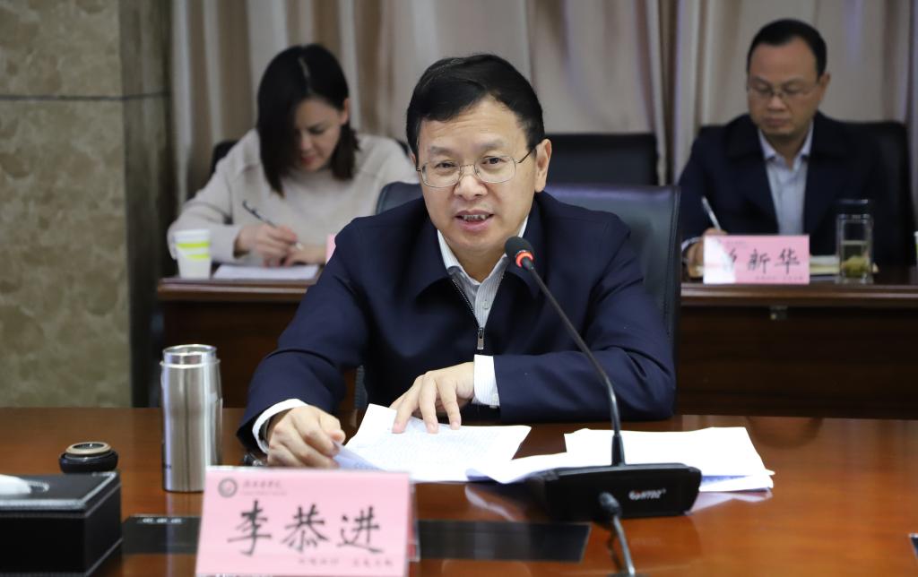 李恭进要求,一是要旗帜鲜明讲政治、铸忠诚。我们必须坚定不移把讲政治摆在首要位置,牢牢把握正确政治方向,不断提高政治判断力、政治领悟力、政治执行力,确保在思想上政治上行动上同以习近平同志为核心的党中央保持高度一致;要严格遵守党章和党内政治准则,严明政治纪律和政治规矩,自觉做到党中央提倡的坚决响应、党中央决定的坚决执行、党中央禁止的坚决不做。二是要聚焦重点推动学校高质量发展。始终坚定不移推进更名大学,坚定不移推进“五大工程”建设,坚定不移推进学科建设,提质量、创特色、上水平,努力建设高水平的应用型医科大学;要在服务地方经济发展上有更大作为,不断拓宽校地合作的广度与深度,提高学校美誉度和影响力。三是要毫不松懈抓好疫情防控和安全稳定工作。绷紧疫情防控这根弦,抓实抓好疫情防控工作,在校学生非必要不离校,教职工严格落实“两点一线”闭环管理,全力维护师生身体健康;积极防范化解各类风险隐患,牢牢守住安全底线,确保学校各项工作平稳有序。四要坚定不移推进全面从严治党。抓实作风建设、反腐倡廉,持续深化纠治“四风”,坚持力度不减、干劲不松,做到新老问题一起抓,作风和腐败问题一起查,始终保持正风反腐的高压态势,推动全面从严治党持续走深走实,巩固风清气正的良好政治生态。