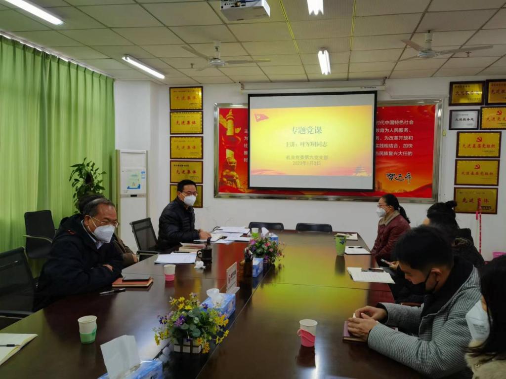 1月3日下午,学校党委委员、副校长叶军明在机关第六党支部宣讲党的二十大精神。