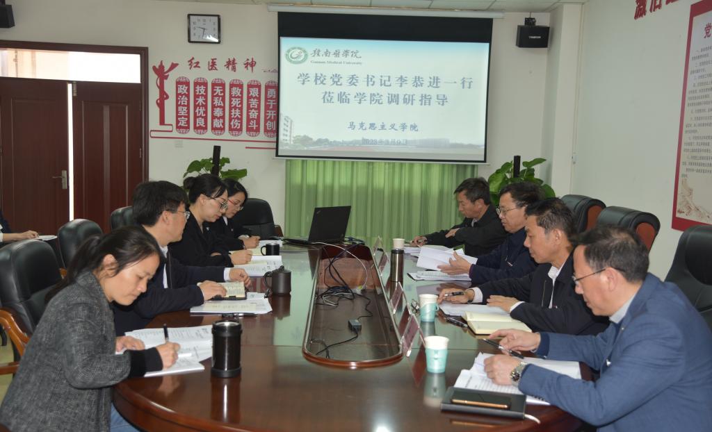 3月9日上午,学校党委书记李恭进深入马克思主义学院调研指导学科建设工作。学校党委副书记曾泽鑫、教务处处长严宜明、发展规划与学科建设处处长黄东陪同调研。