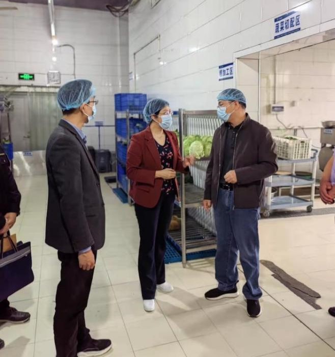 3月23日上午,赣州蓉江新区党工委副书记、管委会主任许伟、赣州蓉江新区党工委委员、管委会副主任谢清泉等一行到我校黄金校区实地督导包保主体食品安全工作。