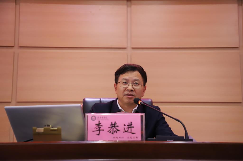 李恭进强调,要内外兼修,全面提升领导干部推进学校现代化建设能力。要加强政治建设,提升政治能力。把捍卫“两个确立”、做到“两个维护”作为最高政治原则和根本政治责任,深入贯彻党的二十大精神和全国“两会”精神,坚持不懈用习近平新时代中国特色社会主义思想凝心铸魂。要夯实战斗堡垒,凝聚奋斗力量。更好发挥党委总揽全局、协调各方作用,全校上下尤其是各级领导干部要增强时不我待的紧迫感、责无旁贷的使命感,将学校工作一项一项抓落实、一条一条见成效。要涵养斗争精神,锤炼过硬本领。保持充沛顽强的斗争精神,大力弘扬优良传统作风,进一步提振事不避难、义不逃责的精气神,真正做到心无旁骛谋发展、集中精力抓发展。要持续深化改革,增强发展活力。坚持问题导向,加强现代化大学制度建设,加快推进校院两级管理体制改革,充分发挥绩效考核“指挥棒”作用,激励广大干部职工主动担当作为、建功立业。要恪守廉洁自律,推动风清气正。坚持把全面从严治党贯穿到工作的各领域、各方面,持续整治形式主义、官僚主义突出问题,深化纠治“四风”和“六种歪风”,营造更加奋发进取的干事创业氛围。
