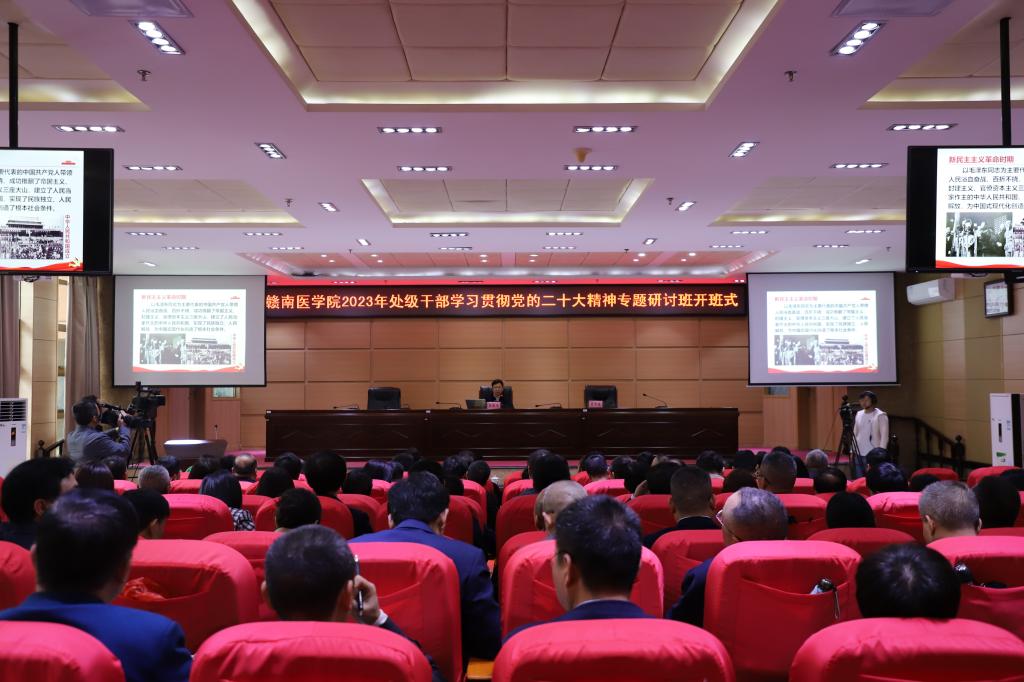 曾泽鑫在主持讲话中强调,深入学习贯彻党的二十大精神,是学校当前和今后一个时期的首要政治任务。要提高政治站位,充分认识学习贯彻党的二十大精神的重大意义,深刻领悟“两个确立”的决定性意义,增强“四个意识”,坚定“四个自信”,做到“两个维护”。要端正学习态度,心无旁骛,以高度的政治责任感投入学习,积极参加研讨交流,务求取得实效。要注重学以致用,坚持以知促行、以行践知,把学习成果转化为干事创业的强大动力,推动学校在建设特色鲜明、人民满意、国内知名的应用型医科大学上迈出新步伐、取得新成效。