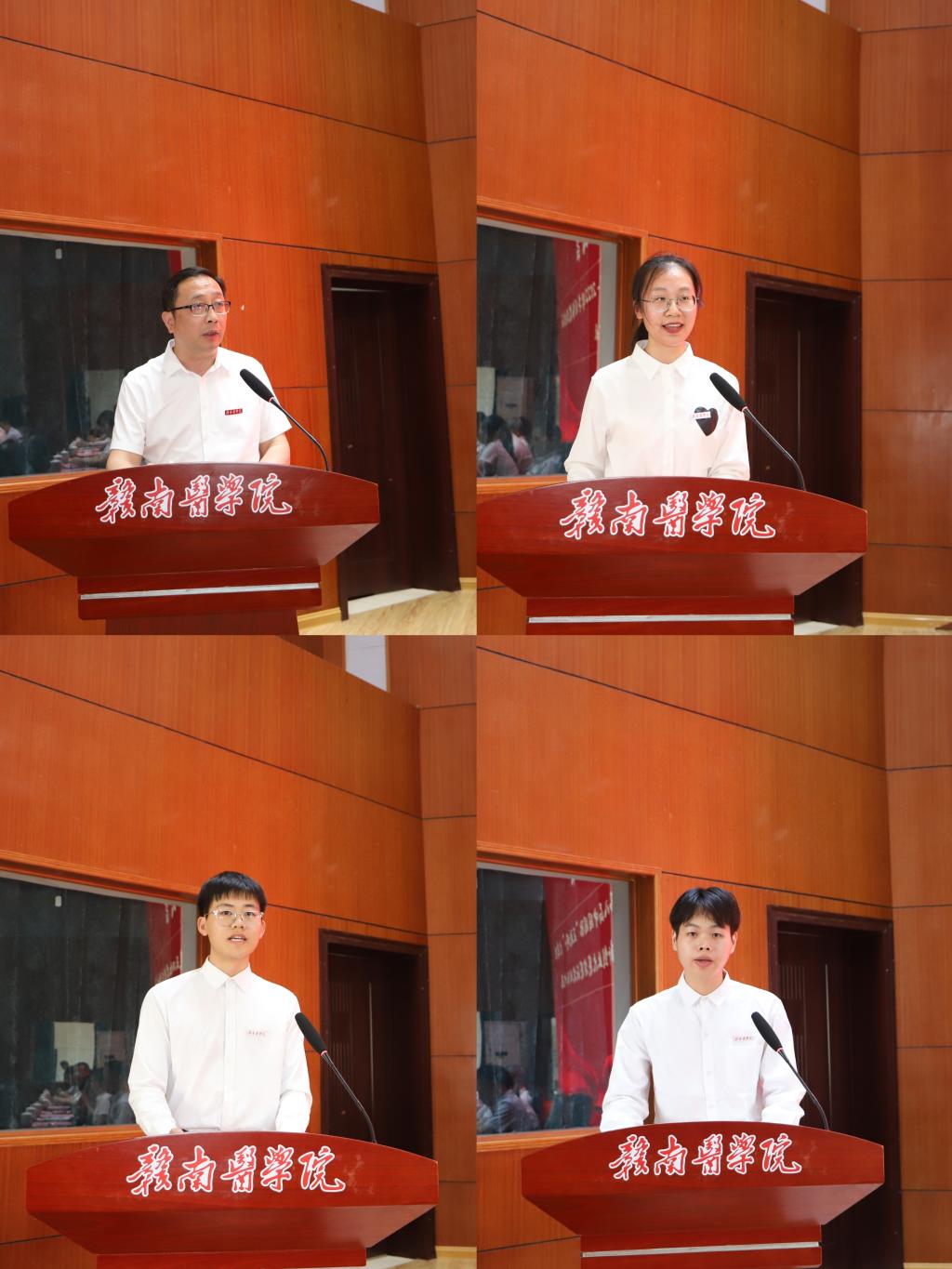 第一临床医学院2020级医学影像学专业本科班学生、国家奖学金获得者潘妍冰,医学信息工程学院2020级生物医学工程专业本科(1)班学生、2022年度五四红旗团支部代表王威,药学院2020级制药工程本科专业(1)班学生、第八届中国国际“互联网+”大学生创新创业大赛省赛获奖团队代表周佳先后发言,表达努力学好专业知识、坚定理想信念、永远跟党走的决心。