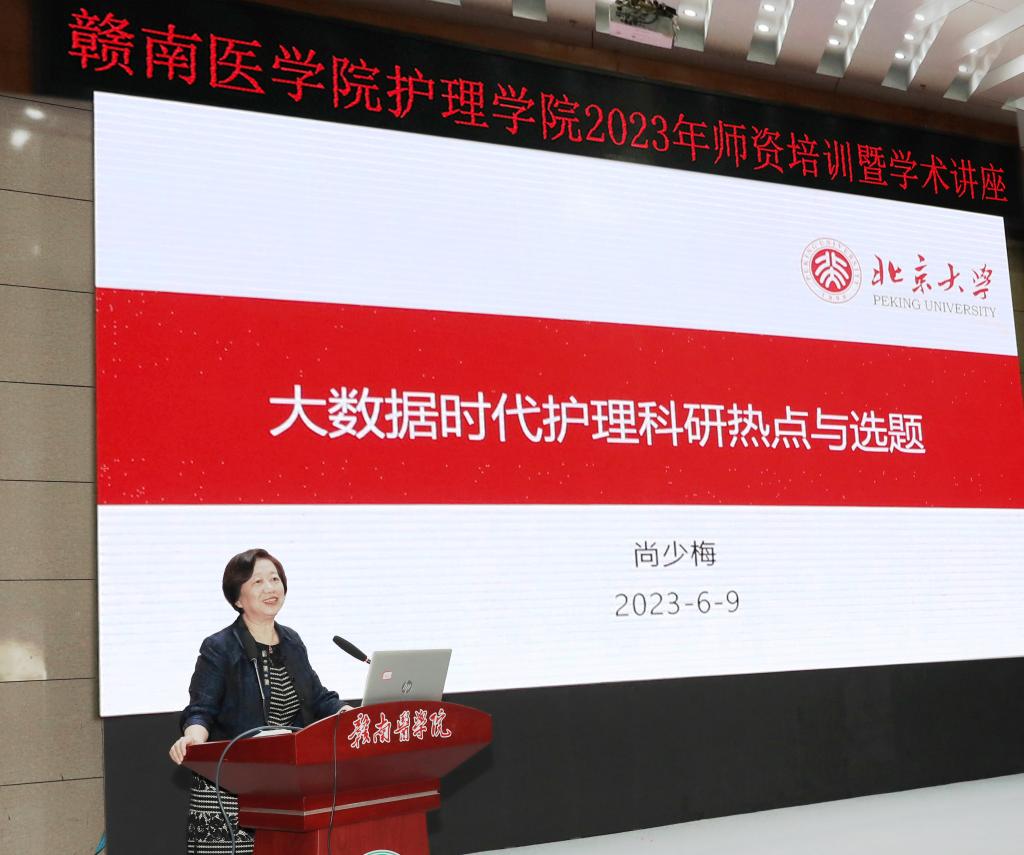 尚少梅以《大数据时代护理科研热点与选题》为题,从数据驱动的护理科研的现状、护理学科学研究国家布局、我国护理学科的发展现状等角度进行深入讲解,给大家带来新的启发。