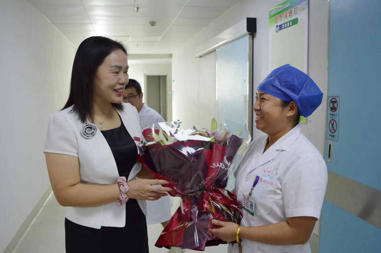 在第三附属医院,学校党委委员、副校长盛瑶环深入牙周黏膜科、超声医学科、重症医学科、康复医学科、血透室和老年医学科等科室,走访慰问了医师代表凌永昌、詹春华、卢致琼,向他们送上节日的祝福,感谢他们长期以来为人民群众健康所做的不懈努力,希望他们牢记誓言、砥砺前行,为赣南革命老区医疗卫生事业多做贡献。