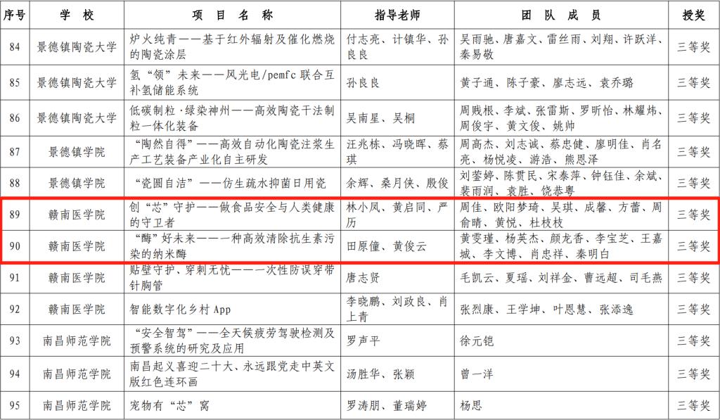 近日,由共青团江西省委、江西省科学技术协会、江西省教育厅、江西省社会科学院、江西省学生联合会共同主办的第十八届“挑战杯”江西省大学生课外学术科技作品竞赛的获奖名单公布。药学院推荐的《创“芯”守护——做食品安全与人类健康的守卫者》和《“酶”好未来——一种高效清除抗生素污染的纳米酶》两项作品喜获三等奖。