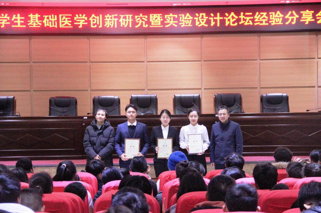 会上,三个获奖团队学生代表许树权(获第七届全国大学生基础医学创新研究暨实验设计论坛金奖)、冯瑞雪(获第七届全国大学生基础医学创新研究暨实验设计论坛金奖)、游晗璐(获得第七届全国大学生基础医学创新研究暨实验设计论坛银奖),依次介绍了他们的参赛项目的基本情况、参赛的准备情况、参赛过程等,尤其是分享了这次参赛的收获、经验、注意事项。参会的同学们均表示受益非浅,了解了全国大学生基础医学创新研究及实验设计大赛的基本情况,提高了他们参与科技创新的积极性和动力,为今后他们参加全国大学生基础医学创新研究及实验设计大赛奠定了基础。