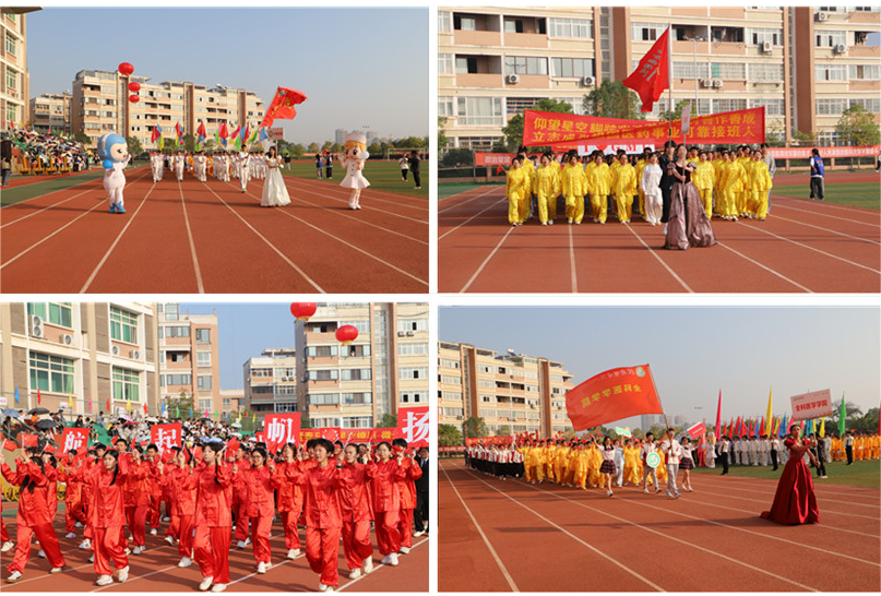 8时整,伴随着昂扬的运动旋律,身着盛装的仪仗队迈着整齐划一的步伐,拉开了进场序幕。紧接着,基础医学院、护理学院、人文社科学院、康复学院、药学院、医学信息工程学院、马克思主义学院、公卫学院、全科医学学院、国际教育学院、机关、第三附属医院(附属口腔医院)、第三临床医学院、第二附属医院、第一附属医院、第一临床医学院、赣南创新与转化医学研究院等代表队高擎彩旗,排着整齐的队伍、喊着雄壮的口号一一通过主席台。