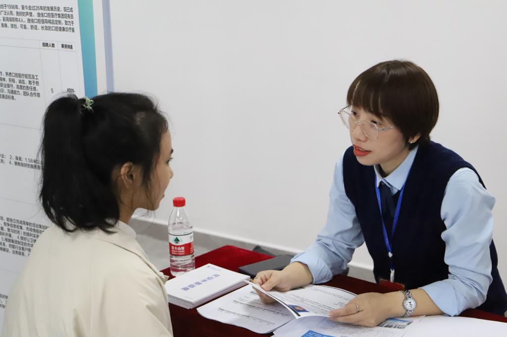 毕业生拿着精心准备好的简历,认真了解用人单位信息和人才需求,详细咨询企业事业单位发展、培训培养、工资待遇等方面的问题。招聘单位代表与毕业生积极互动,耐心解答毕业生关切的问题。据不完全统计,此次双选会上,我校毕业生投递简历近1000份,现场达成初步就业意向超过150人。下午,部分招聘单位还开展了专场宣讲会或面试签约活动。