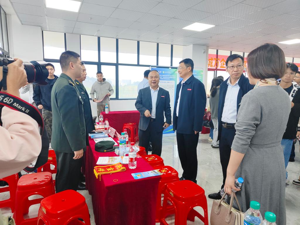 招聘会上,章贡区征兵办和学校人民武装部设立征兵服务站,宣传征兵政策,鼓励2024届毕业生积极应征入伍。征兵办同志现场向同学们发放征兵宣传手册,介绍大学生征兵政策和优惠措施,吸引了很多同学、老师和家长前来咨询,有效提高了大学生国防观念和投笔从戎、献身国防的参军热情。