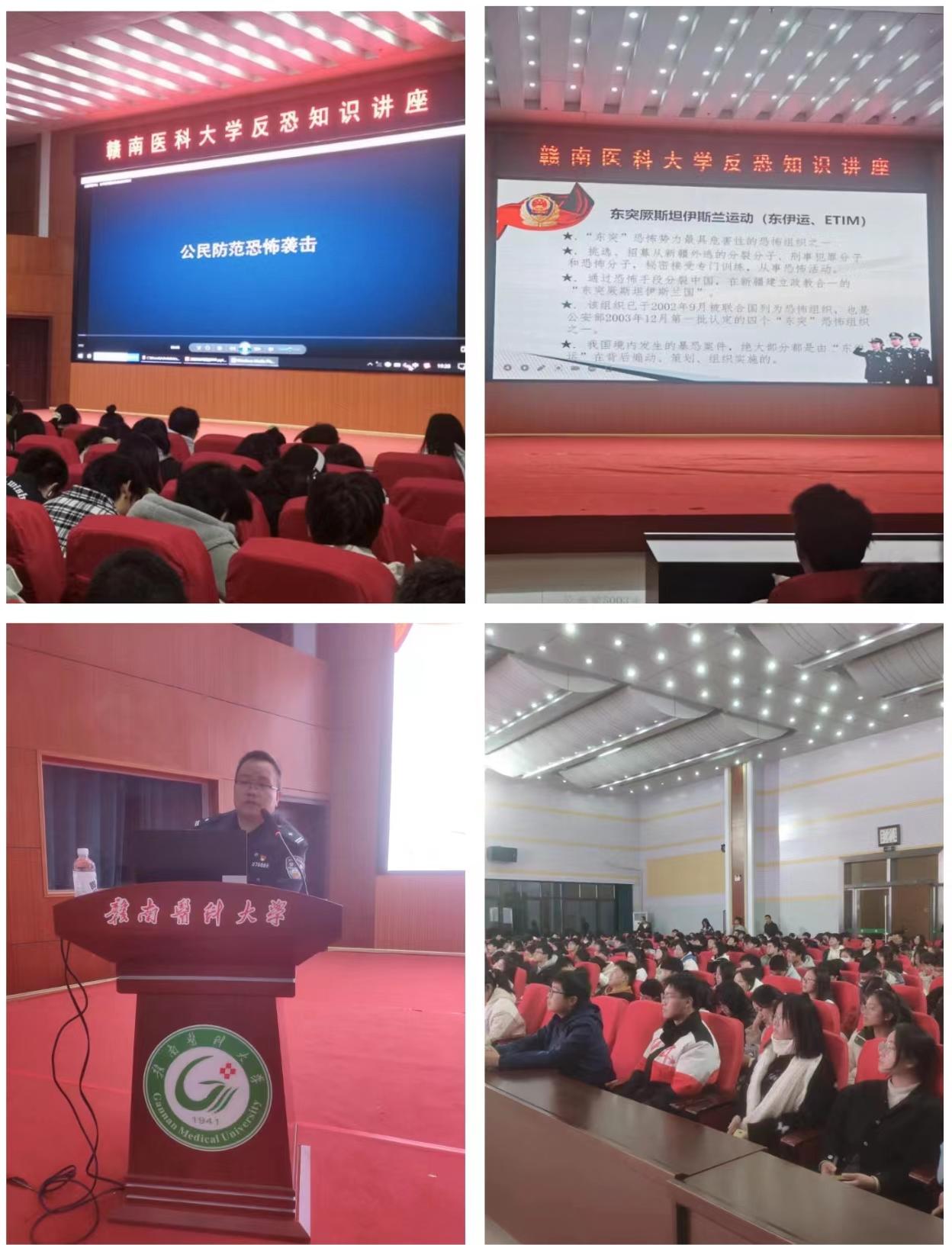 12月26日晚上,我校邀请赣州市公安局蓉江公安分局反恐大队的钟久伸警长在黄金校区开展“全民反恐,共创平安”反恐知识讲座。黄金校区400多名师生聆听了讲座。