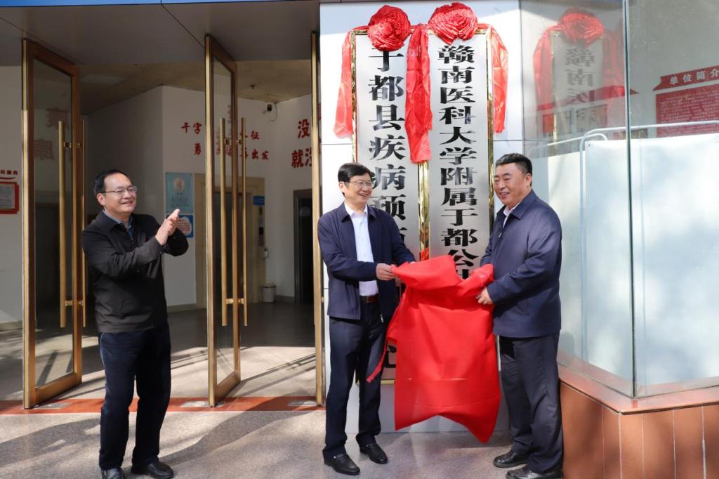 张小康、郝敏哲共同为赣南医科大学附属于都公共卫生中心揭牌。