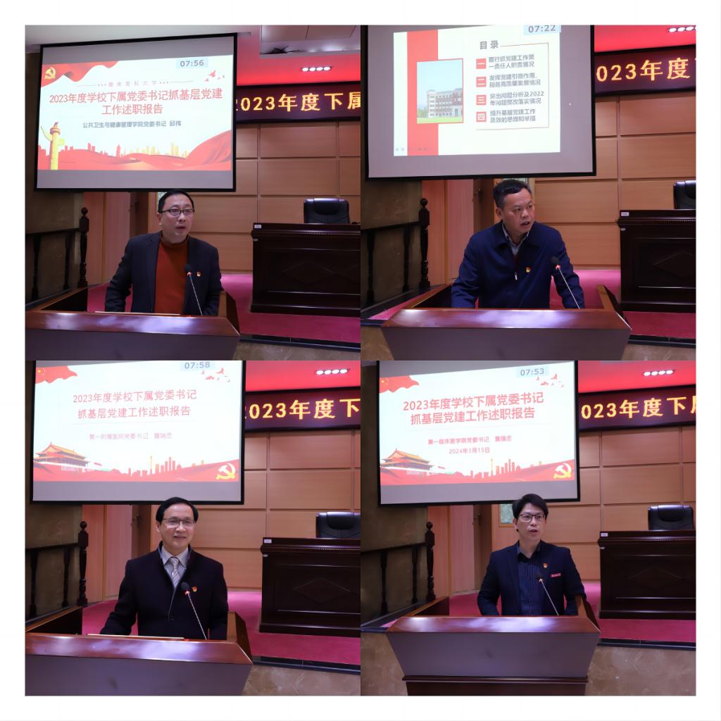全校15个下属党委书记就2023年度抓基层党建工作的成效与不足、下一步打算进行了述职。