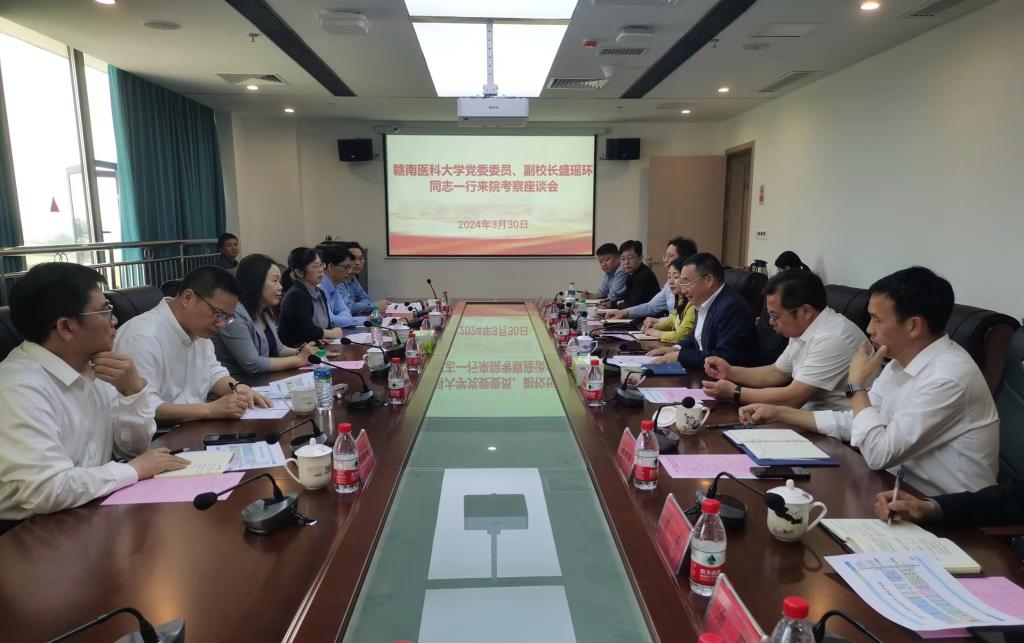 3月30日上午,盛瑶环带队到瑞金市人民医院考察教学医院建设工作。该院党委书记曾书平,党委副书记、院长胡永兴等陪同考察。