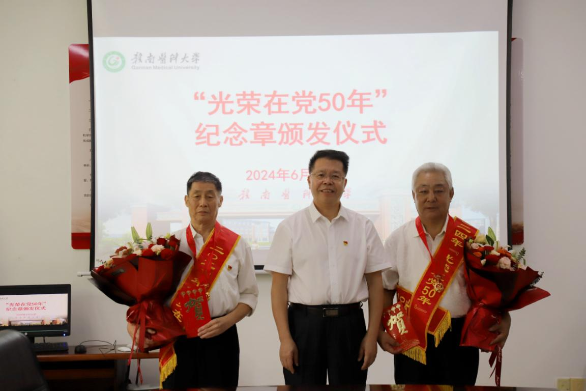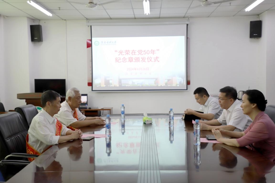 6月26日,学校在黄金校区举行“光荣在党50年”纪念章颁发仪式。学校党委委员、副校长廖伟出席并讲话。学校离退处处长、党总支书记钟美珠主持仪式。老党员代表曾祥运、奚继先,党委组织部、离退休党总支有关负责同志以及青年代表等参加仪式。