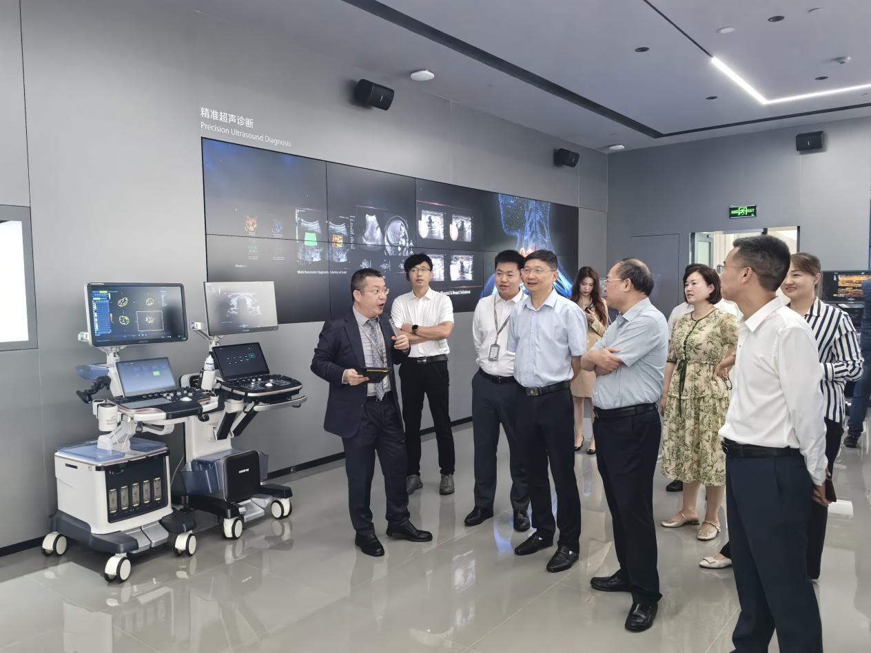 张小康一行参观了迈瑞医疗展厅,深入了解了该公司33年的发展历程、全球分布、5大产品线以及产学研情况,并就双方深化交流、进一步开展合作进行座谈。