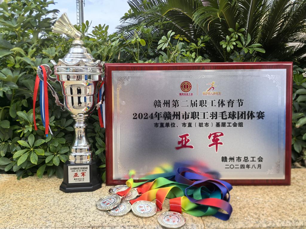 8月22日下午,2024年赣州市职工羽毛球团体赛颁奖仪式在龙南市体育中心举行。经过3天紧张激烈的比赛,我校代表队荣获市直(驻市)单位组亚军,陈菲、高莹两人获评优秀运动员,学校工会荣获优秀组织奖。此次全市职工羽毛球团体赛是赣州第二届职工体育节系列活动之一,由赣州市总工会主办,龙南市总工会、龙南市教体局承办,赣州市羽毛球协会、龙南市羽毛球协会协办,共吸引了来自全市各地各单位的28支代表队310余名职工参赛。比赛分县(市、区)组和市直(驻市)组两个组别,采用“小组赛+淘汰赛”的赛制,分别决出各组别前8名。