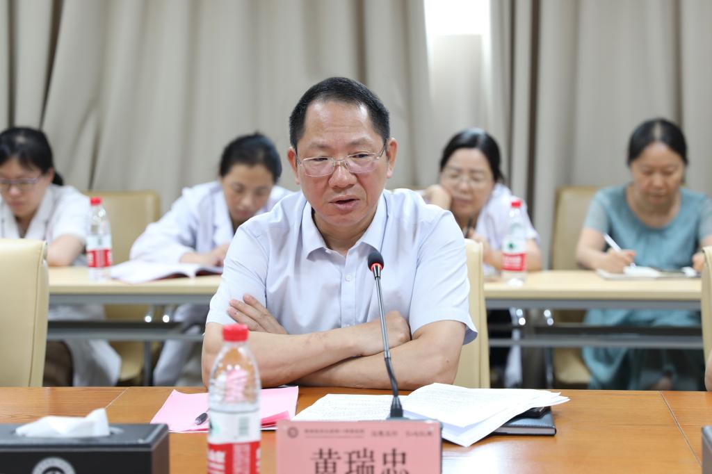 学校党委委员、副校长,第一临床医学院、第一附属医院党委书记黄瑞忠作总结讲话。黄瑞忠强调,一要进一步提高认识,二要进一步明确任务,三要进一步压实责任,四要进一步坚定信心。黄瑞忠指出,临床医学专业认证工作事关学校、学院和医院的生存与发展,全院教职员工都要高度重视,要压实各工作组、教研室、教学小组以及全体职工的责任,对照工作方案,梳理自评自建阶段未完成的任务,利用中层干部考核管理办法为杠杆,切实落实各项工作,众志成城推动临床医学专业认证工作。