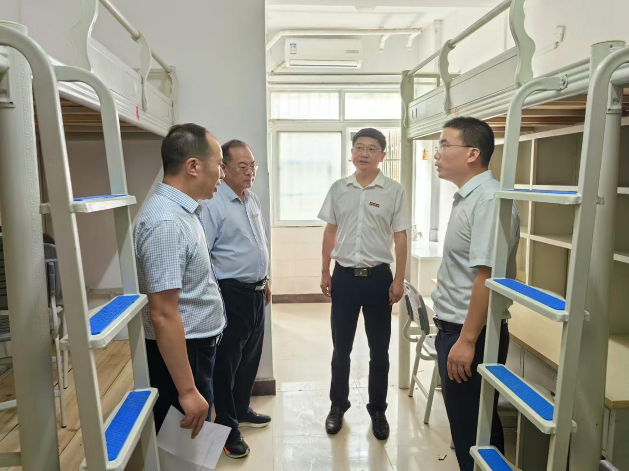 为确保新学期教育教学工作安全、平稳、有序、高效,着力打造平安校园,全面加强安全管理,筑牢校园安全防线。8月28日,学校党委书记、校长张小康带队对学生宿舍进行秋季开学前安全隐患排查。学校党委委员、副校长叶军明,党委委员、统战部部长赖传景参加。