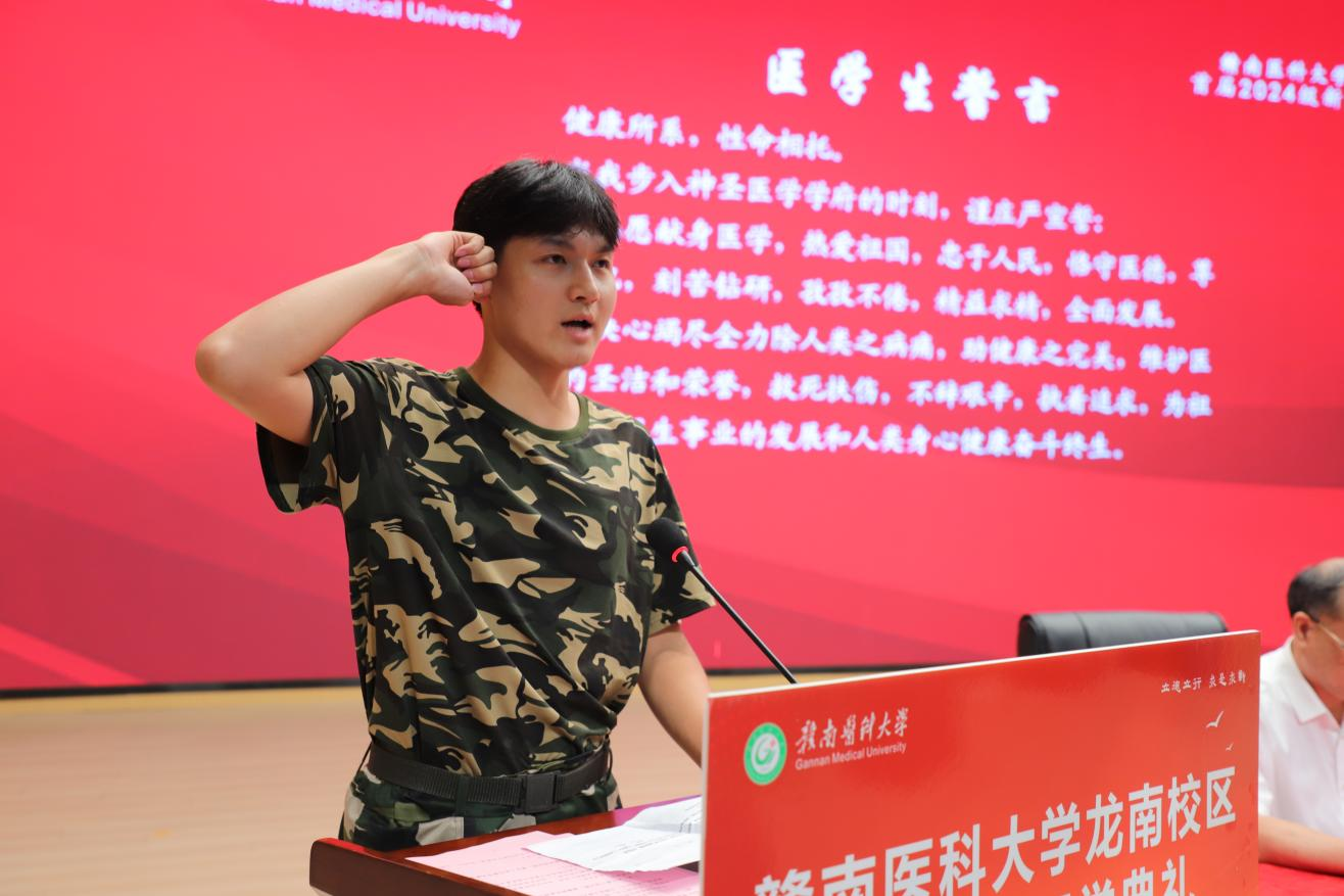 参加典礼的还有:学校各职能部门负责人、龙南市各相关单位代表、赣医大一附院龙南医院有关领导和代表、相关校友会特邀嘉宾以及2024级全体新生。