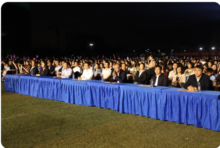 在家的学校党委班子成员张小康、黄瑞忠、叶军明、盛瑶环、廖志平、赖传景、徐华平现场观看演出。