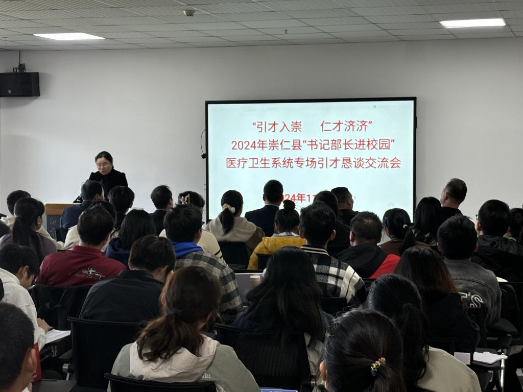 崇仁县“书记部长进校园”医疗卫生系统专场引才恳谈交流会在图文信息中心509就业宣讲室举行,吸引了百余名学生前来参加。