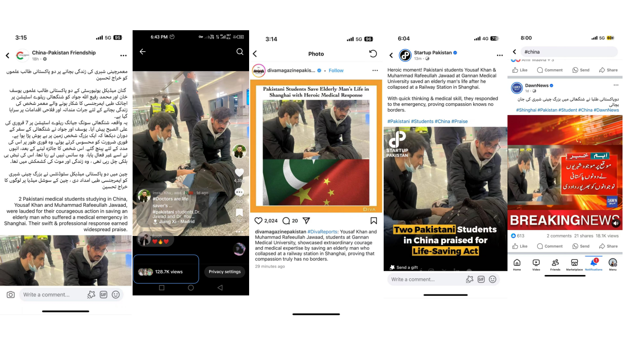 此外,巴基斯坦主流融媒体中巴友谊报(China-Pakistan Friendship)、黎明新闻(DawnNews)、巴基斯坦Startup、DIVA Magazine Pakistan等多家海外媒体也纷纷报道了两名留学生英勇救人的感人事迹,超过40万人阅读和观看了新闻,超过2万了点赞和留言。黎明新闻(DawnNews)更是以突发新闻报道,称两名赣南医科大学两名巴基斯坦青年医学生生动展现了“救援无国界”的大爱精神,展示了巴基斯坦青年的良好形象。