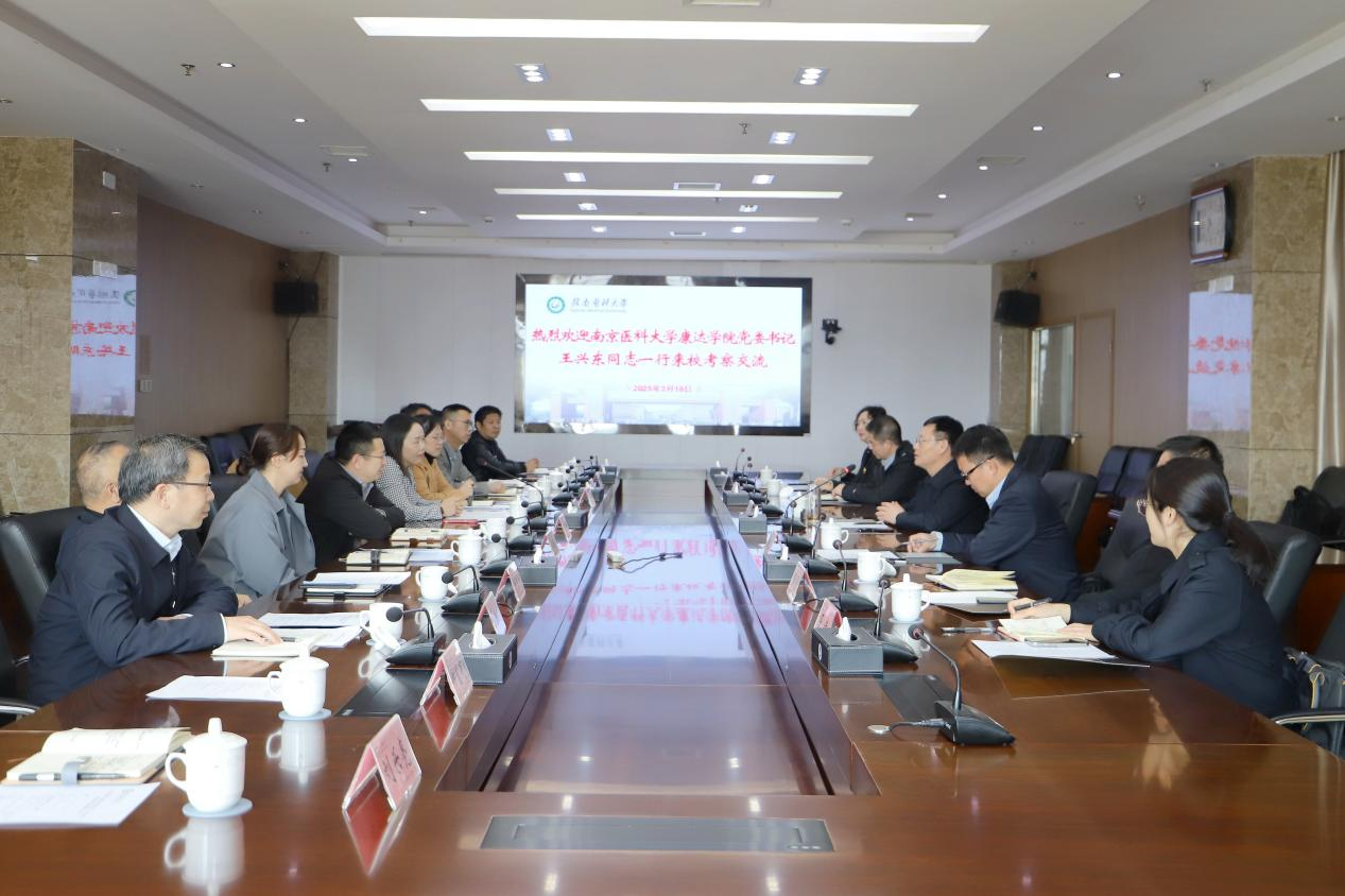 3月18日,南京医科大学康达学院党委书记王兴东,党委副书记、副院长王磊,副院长郭继成一行来校考察交流并座谈。学校党委委员、副校长盛瑶环出席并主持座谈会。