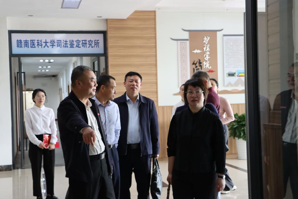 3月26日,省司法厅司法鉴定工作处处长董颖、四级调研员李四珍,鹰潭市司法局副局长张剑淞一行来到我校司法鉴定中心开展调研,赣州市司法局二级调研员陈新生,我校基础医学院院长谢水祥、司法鉴定研究所所长汪家文等陪同调研。