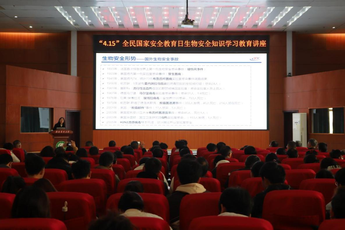 2025年4月15日是第10个全民国家安全教育日,是《中华人民共和国生物安全法》颁布实施4周年。为加强对《中华人民共和国生物安全法》的宣传和教育,提升我校师生的生物安全防护意识,防范和应对生物安全风险,维护国家安全,4月2日,我校特邀江西省疾病预防控制中心熊英副主任开展生物安全学习教育讲座。