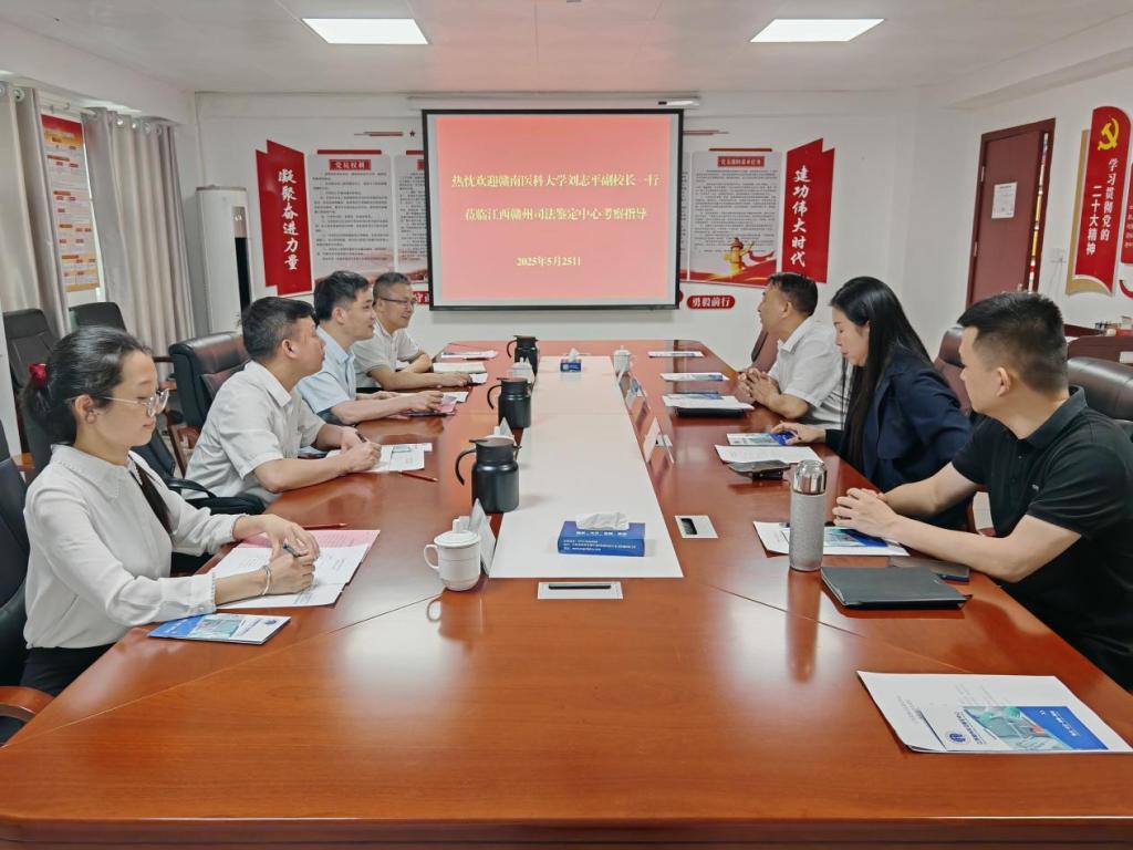在随后召开的调研座谈会上,赣州司法鉴定中心党支部书记、主任赖传勇对刘志平一行的到来表示热忱欢迎。双方围绕校企合作、人才培养等方面展开深入交流。赖传勇表示,希望进一步深化双方在人才培养、科研攻关、疑难案件协作等领域的合作,共同探索产教融合新路径,助力司法鉴定人才培养及技术创新,全面提升司法鉴定工作技能与服务水平。