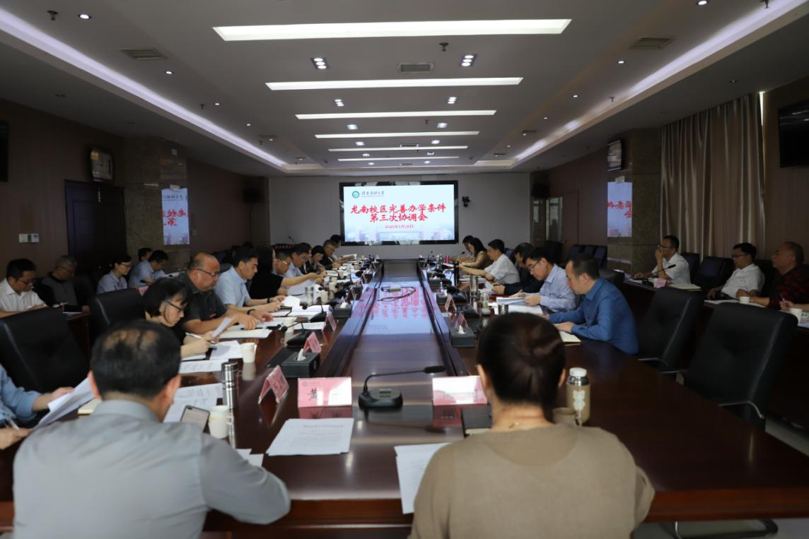 为进一步推动龙南校区办学条件建设工作顺利开展,5月28日,龙南校区完善办学条件第三次调度会在黄金校区召开。