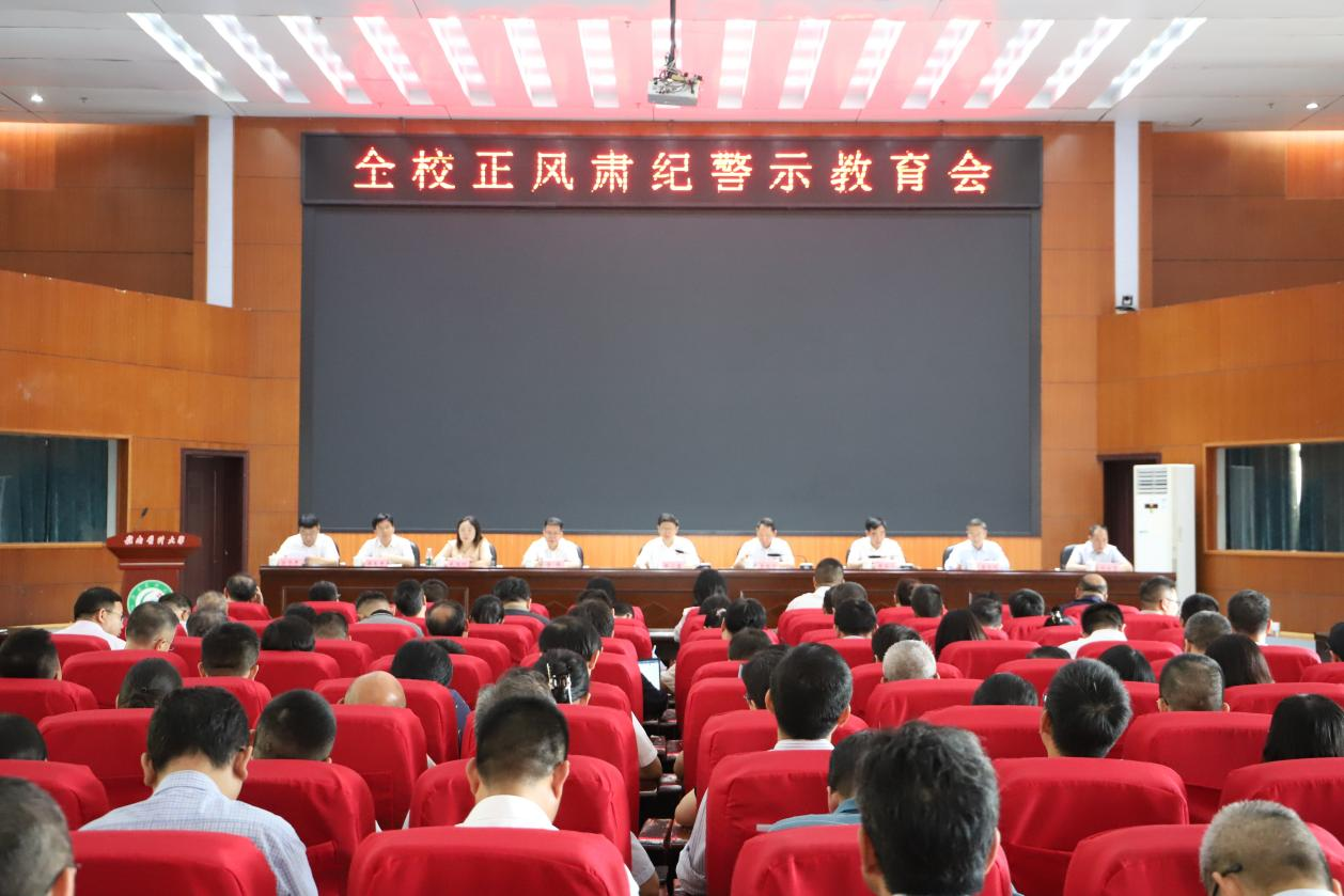 会上,学校党委副书记黄瑞忠传达了中央党的建设工作领导小组有关通知精神、全省正风肃纪警示教育会精神及省纪委有关文件精神。省纪委省监委驻校纪检监察组组长、校党委常委、校纪委书记黄海军通报了违反中央八项规定精神典型案件并剖析。