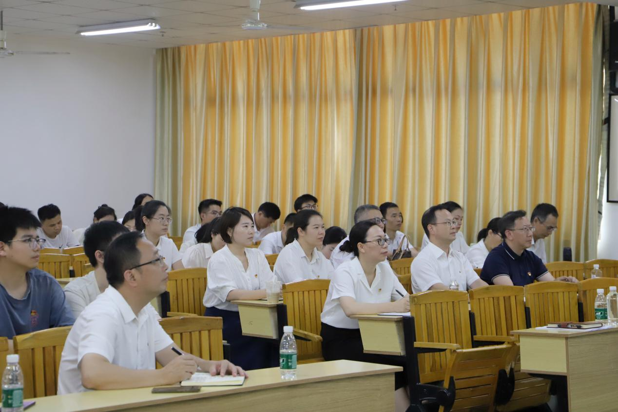 学校相关职能部门负责人、马克思主义学院、公共卫生与健康管理学院全体教工党员参加党课学习。