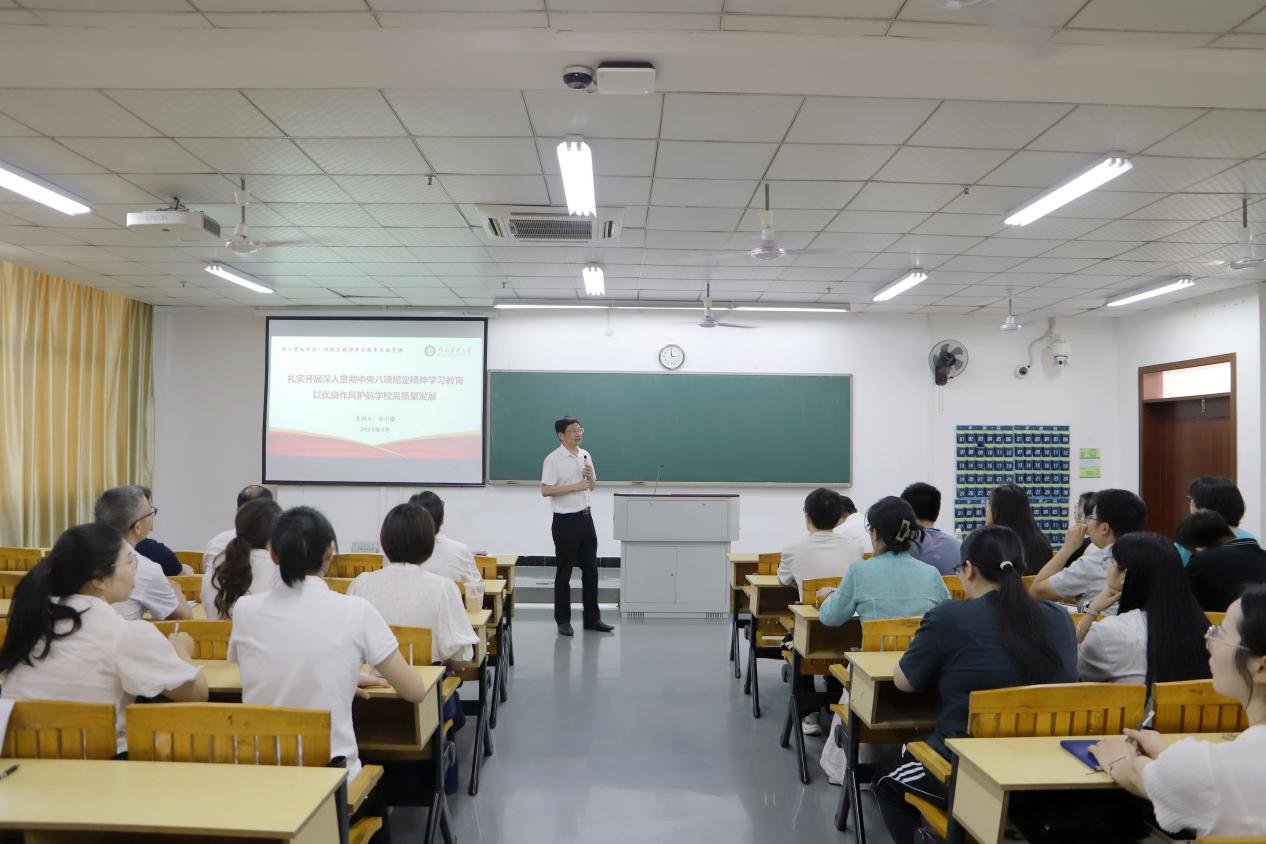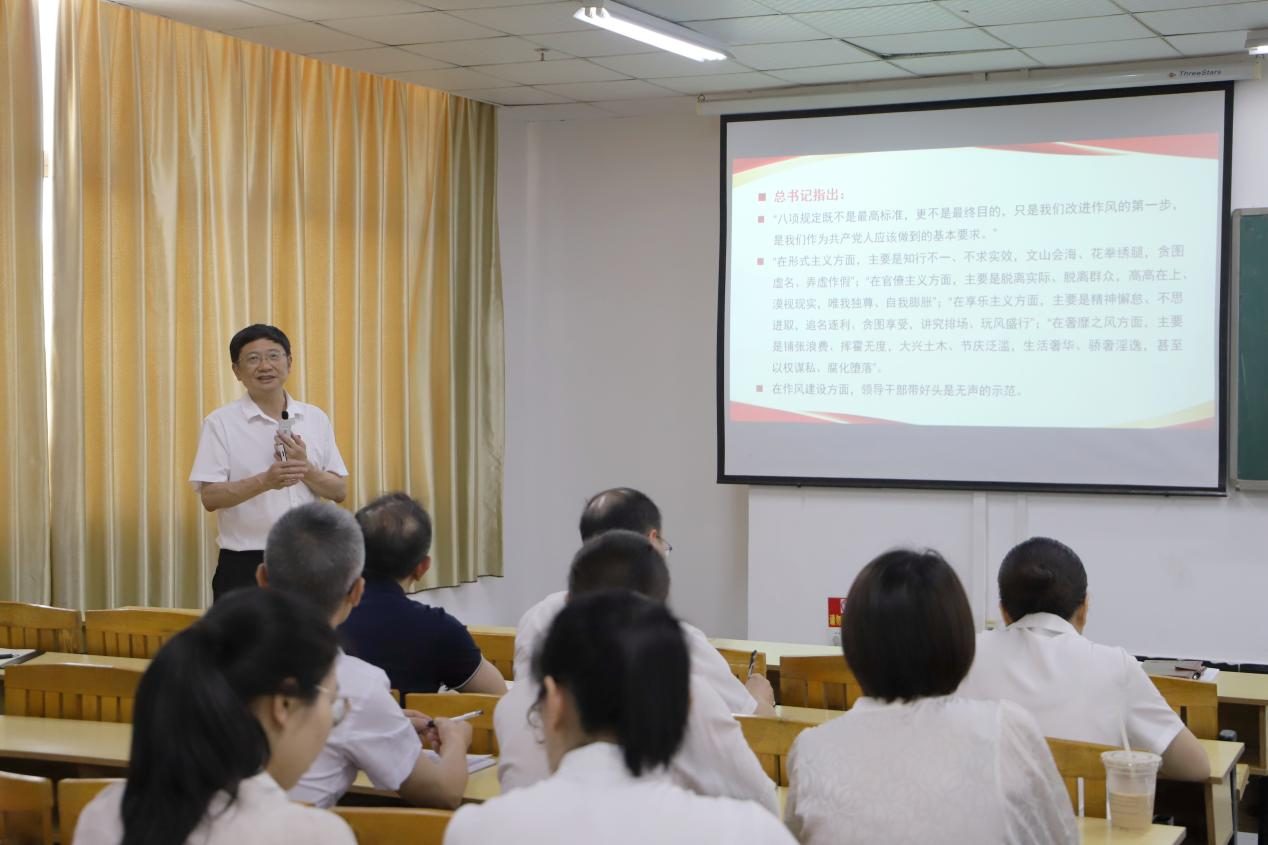 6月30日,学校党委书记、校长张小康以《扎实开展深入贯彻中央八项规定精神学习教育——以优良作风护航学校高质量发展》为题,为党员干部讲授深入贯彻中央八项规定精神学习教育专题党课。