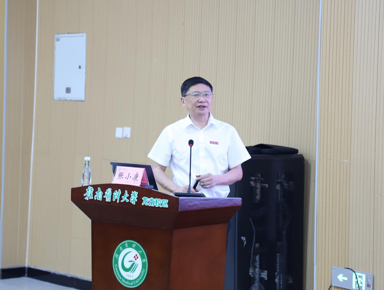张小康强调,要锚定目标任务,全面推进高水平医科大学建设。要认真做好新一轮本科教育教学审核评估准备工作,针对模拟评估中暴露出的问题,采取有效措施重点解决。要对照申报要求,聚焦核心指标,列出问题清单,提出可行措施,补齐短板弱项,持续推进博士学位授予单位建设工作。要扎实做好龙南校区新生入学准备工作,加强部门间协调配合,做好新生服务保障工作,确保迎新和开学工作顺利有序开展。要做好临床医学专业(交大医学班)本科人才培养工作,进一步明晰人才培养目标,加强专业课程整合,强化高素质骨干教师队伍建设,着力培养一批高素质复合型医学人才。要切实做好省管高校综合考核工作,确保实现“进入应用型建设高校赛道第一等次、排名前四”的目标。要深入推进“40项重点工作”,全力以赴推进各项重点工作取得新进展。要深化高校领域突出问题系统整治工作,聚焦重点领域、锚定整治目标,敢于动真碰硬,做到逐项“销号”,确保整治见底见效。要凝练“红医魂”党建品牌内涵,构建“红医魂”党建品牌体系,提升“红医魂”党建品牌实效,努力扩大学校党建工作的知名度和美誉度。