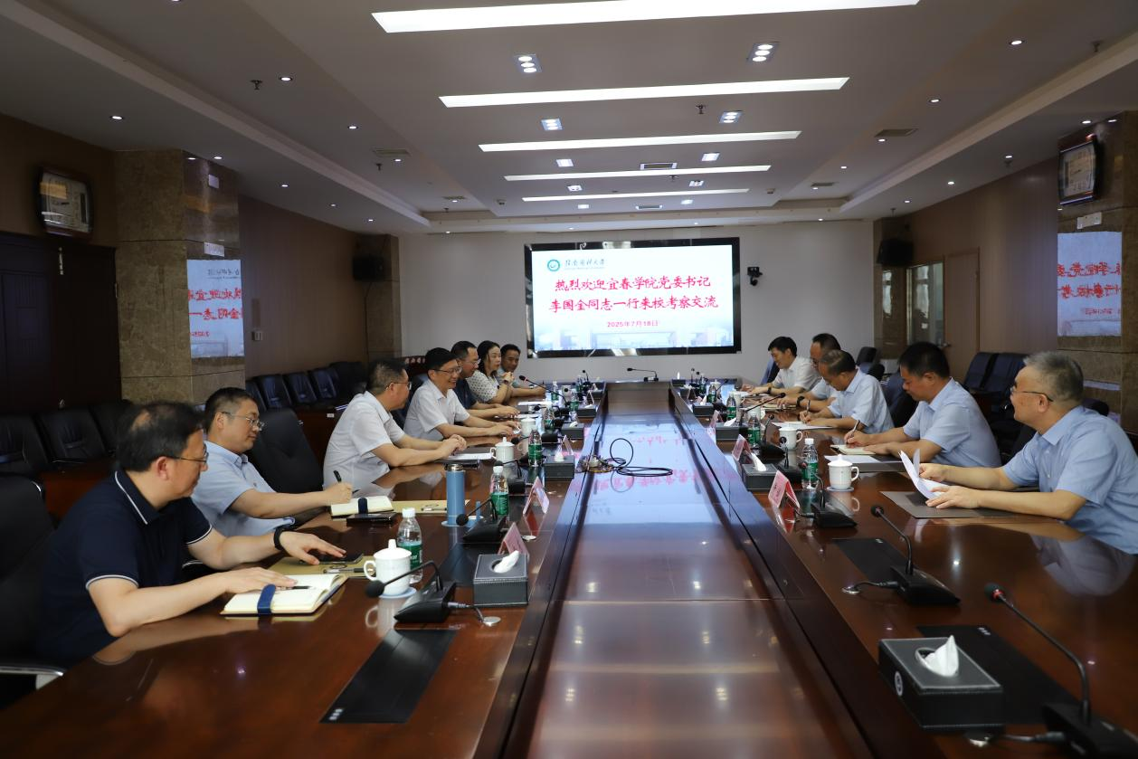 7月18日上午,宜春学院党委书记李国金一行到校考察交流,宜春学院党委副书记、校长蔡海生,副校长黄伟,党委委员、副校长黄诚一同考察交流。