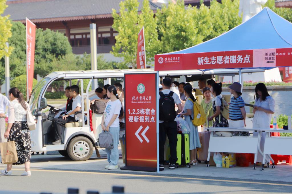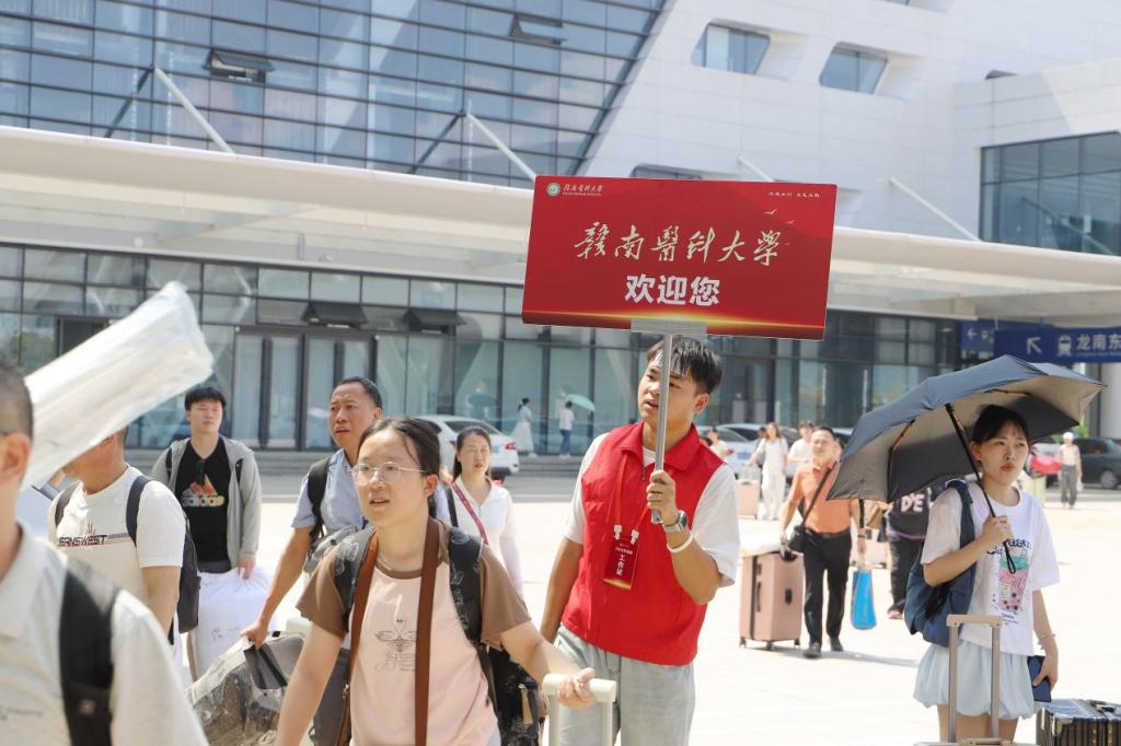 “欢迎同学们加入赣南医科大学这个大家庭!”“一路辛苦了,对学校还满意吗?”“有什么需要帮助的尽管说。”