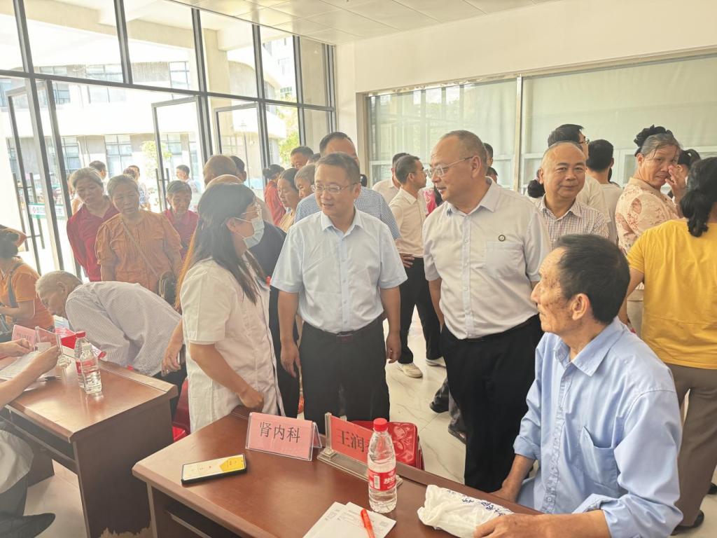 黄孝天首先来到西江镇卫生院,看望正在开展“红医魂”连心工程义诊活动的学校一附院医疗专家和博士团队,详细了解义诊接诊量、常见疾病谱,并实地进行参观了解卫生院科室设置情况。